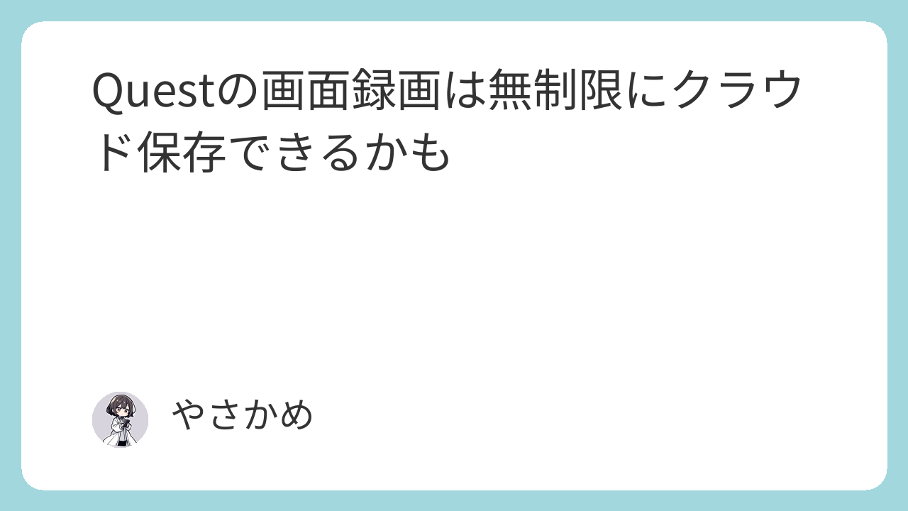 meta quest2 の画面録画の同期について。タブレットですぐに参照出来て便利なのだが、容量の消費が気になったので調べてみた。